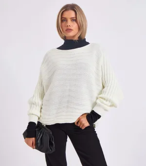 Gestreepte gebreide oversized trui met vleermuismouwen