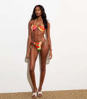 Bandeau-top van tropische palm met schelp en hoog getailleerde bodem met ruches