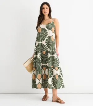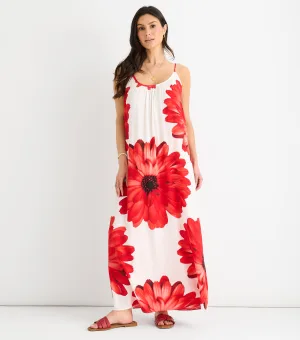 Witte oversized jurk met bandjes en bloemenprint van viscose