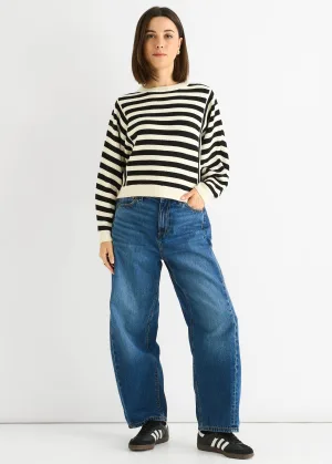 Witte Recycle Contrast Streep Losse Trui
