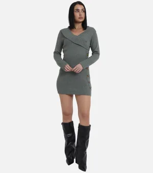 Grijze wikkeljurk met knoopjes