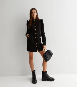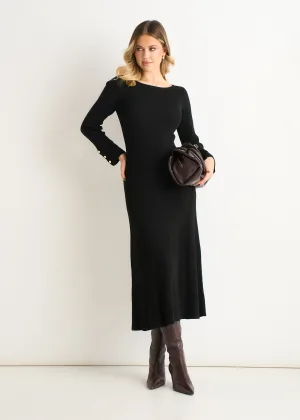 Zwarte gebreide fit & flare-jurk met halve halslijn