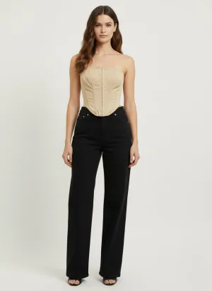 Beige Elastische taille uitlopende broek