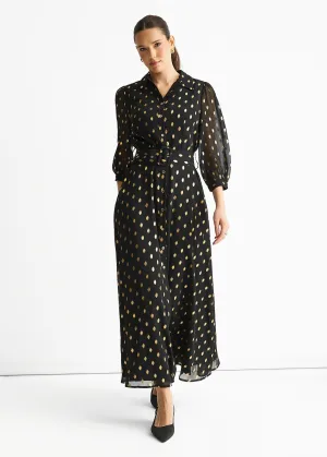 Zwarte chiffon maxi-shirtjurk met ceintuur