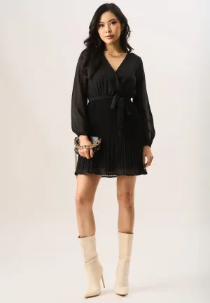 Geplooide mini-wikkeljurk met lange mouwen