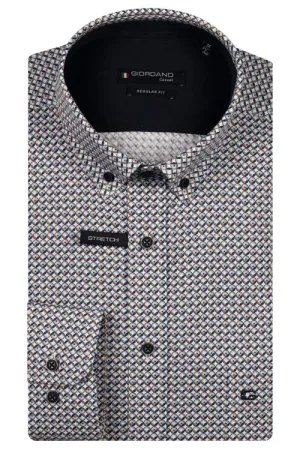 Giordano Casual hemd lange mouw Blauw Row, LS Cutaway Colourful Pri 427819/60
