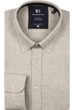 Giordano Brando long sleeve button down Wooltouch melange f Bruin heren