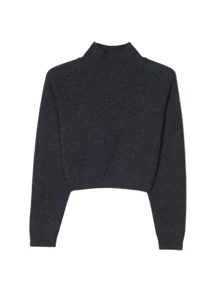 GOBI Cashmere Trui ‘Cropped High-Neck Cashmere Sweater’ donkergrijs