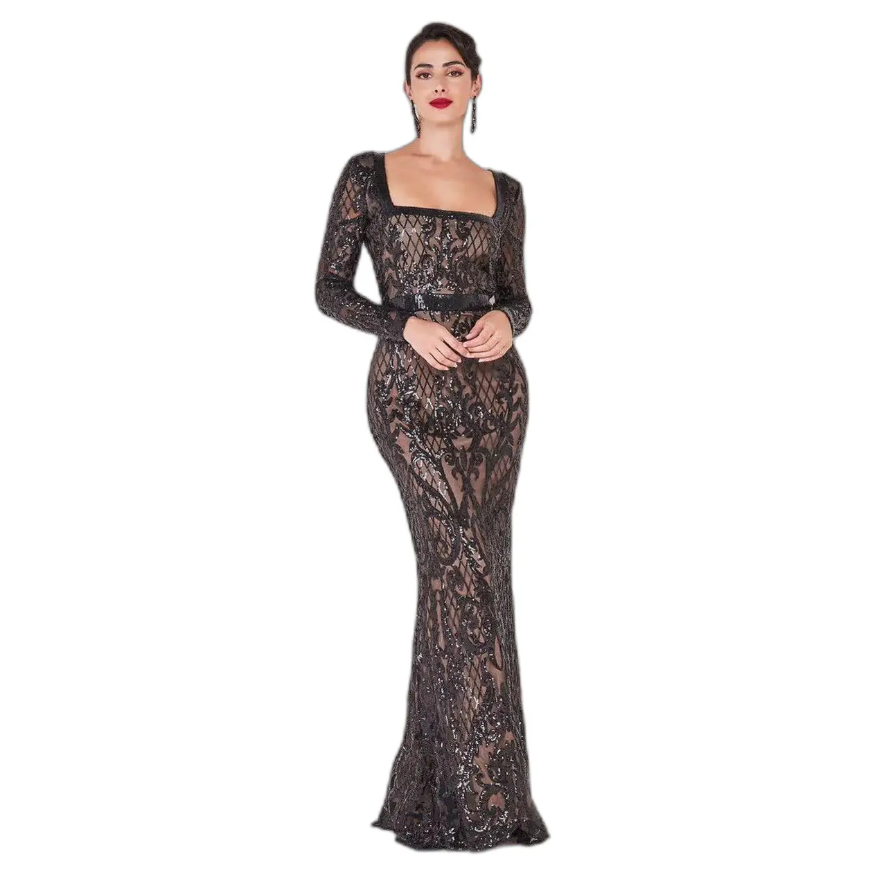 Vrouw lange mouwen jurk met pailletten vlam Goddiva Maxi