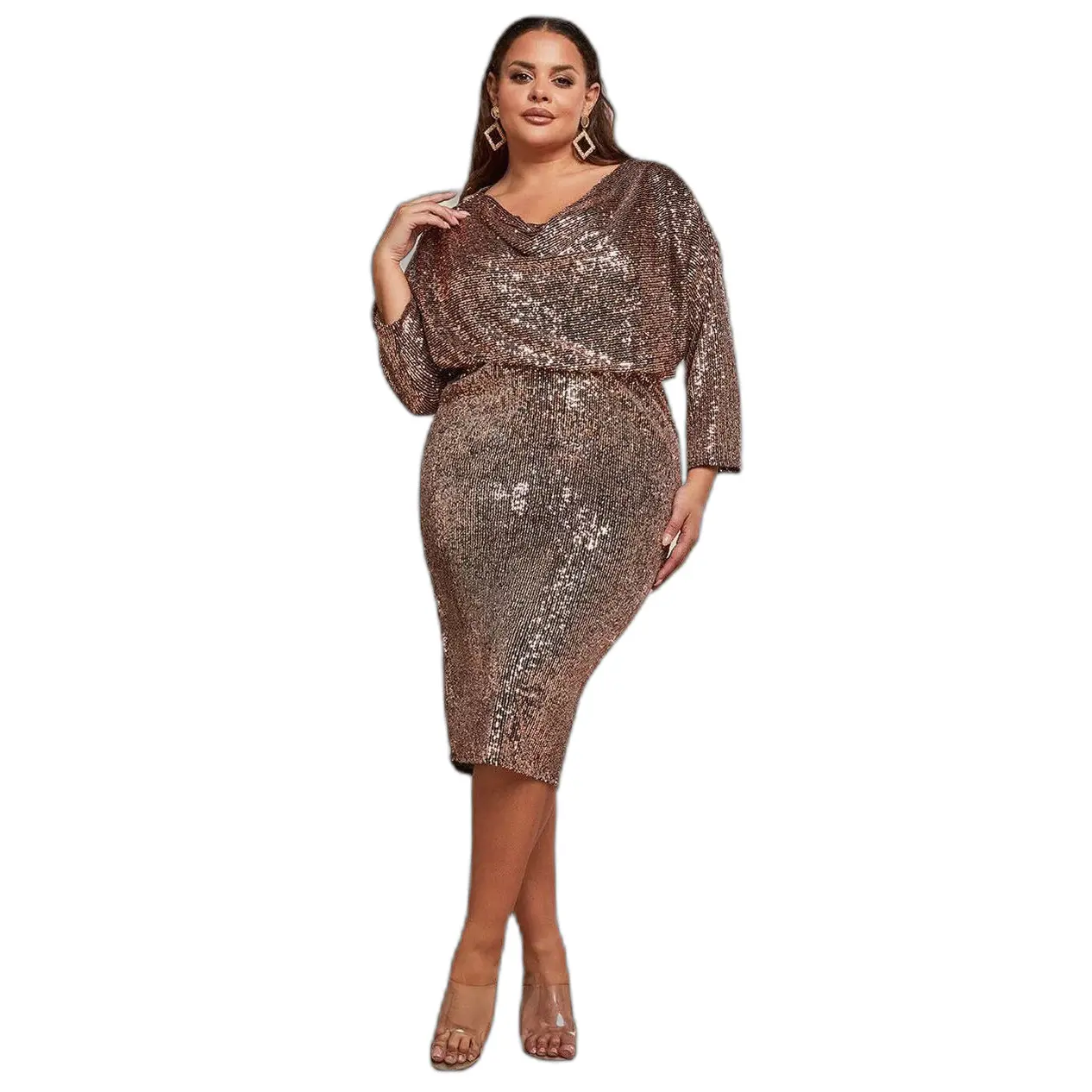 Dunne jurk met vierkante hals en pailletten, met golfrand vrouw Goddiva