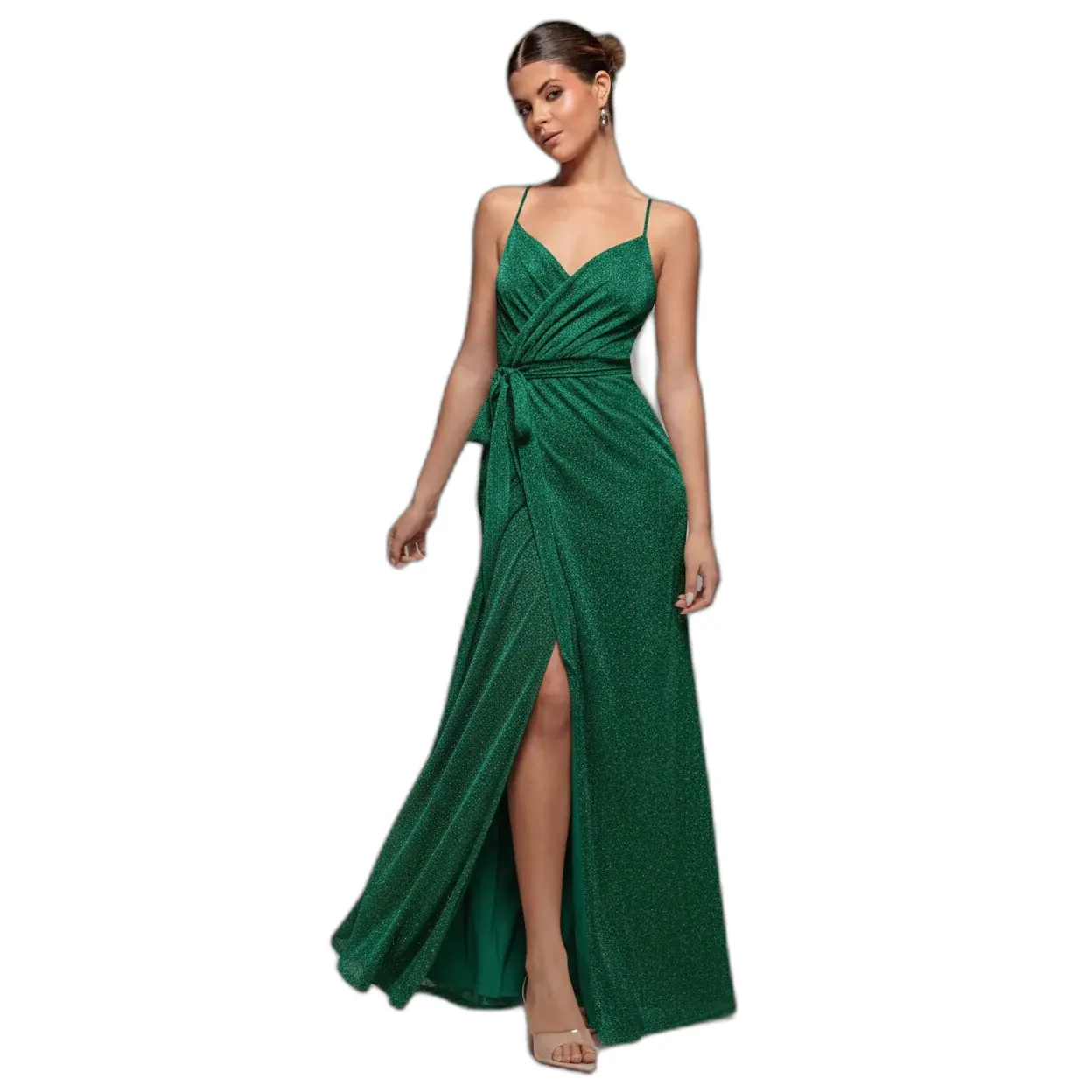 Dunne jurk met open rug en beeninsnijding dames Goddiva Maxi