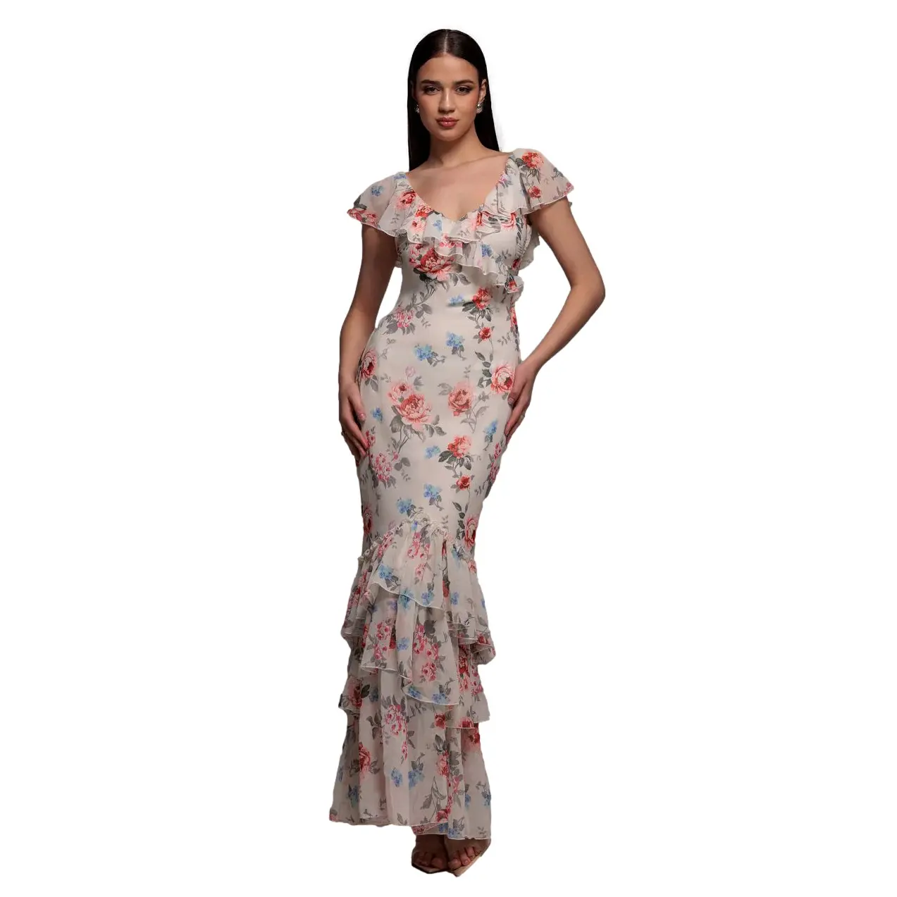 Vrouwelijke bloemenprint chiffon jurk Goddiva