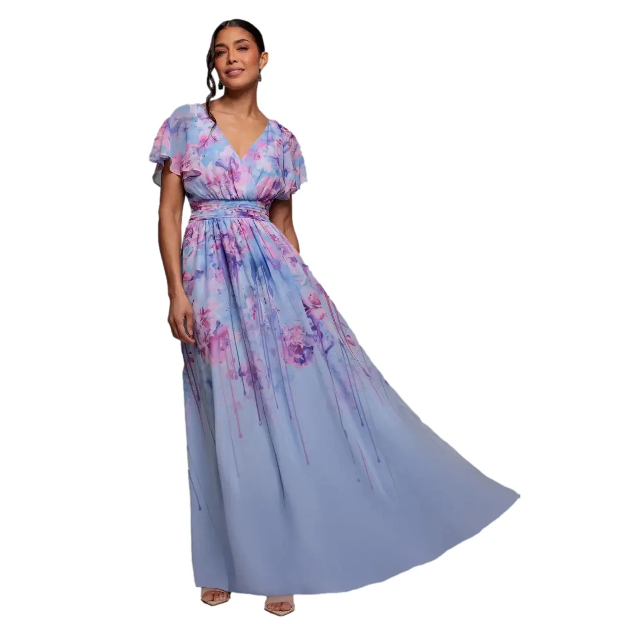 Lange Gedrukt Chiffon Satijn Jurk met Vlindermouwen Dames Goddiva