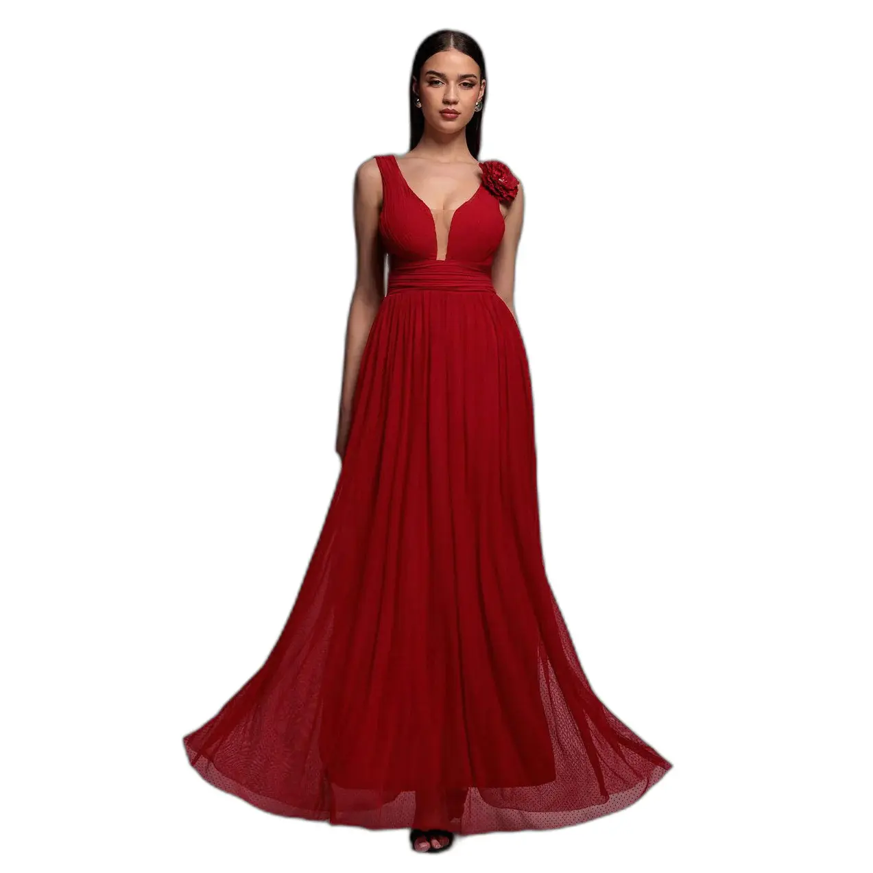 Vrouwelijke Asymmetrische Maxidress met Plissé Goddiva