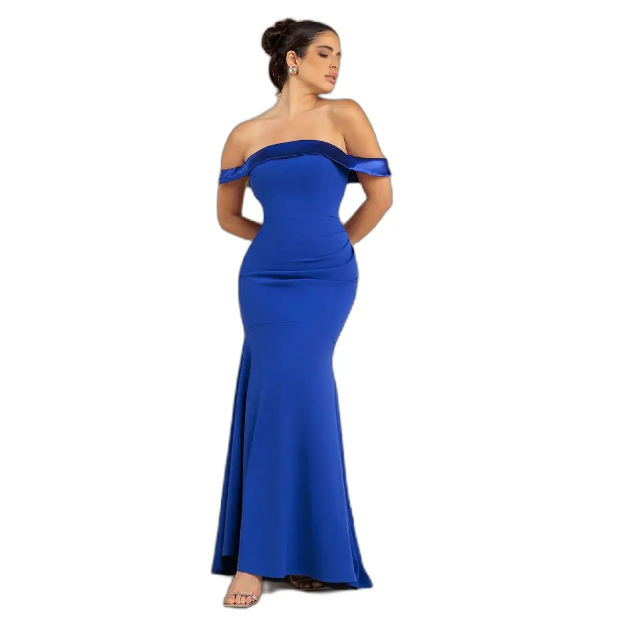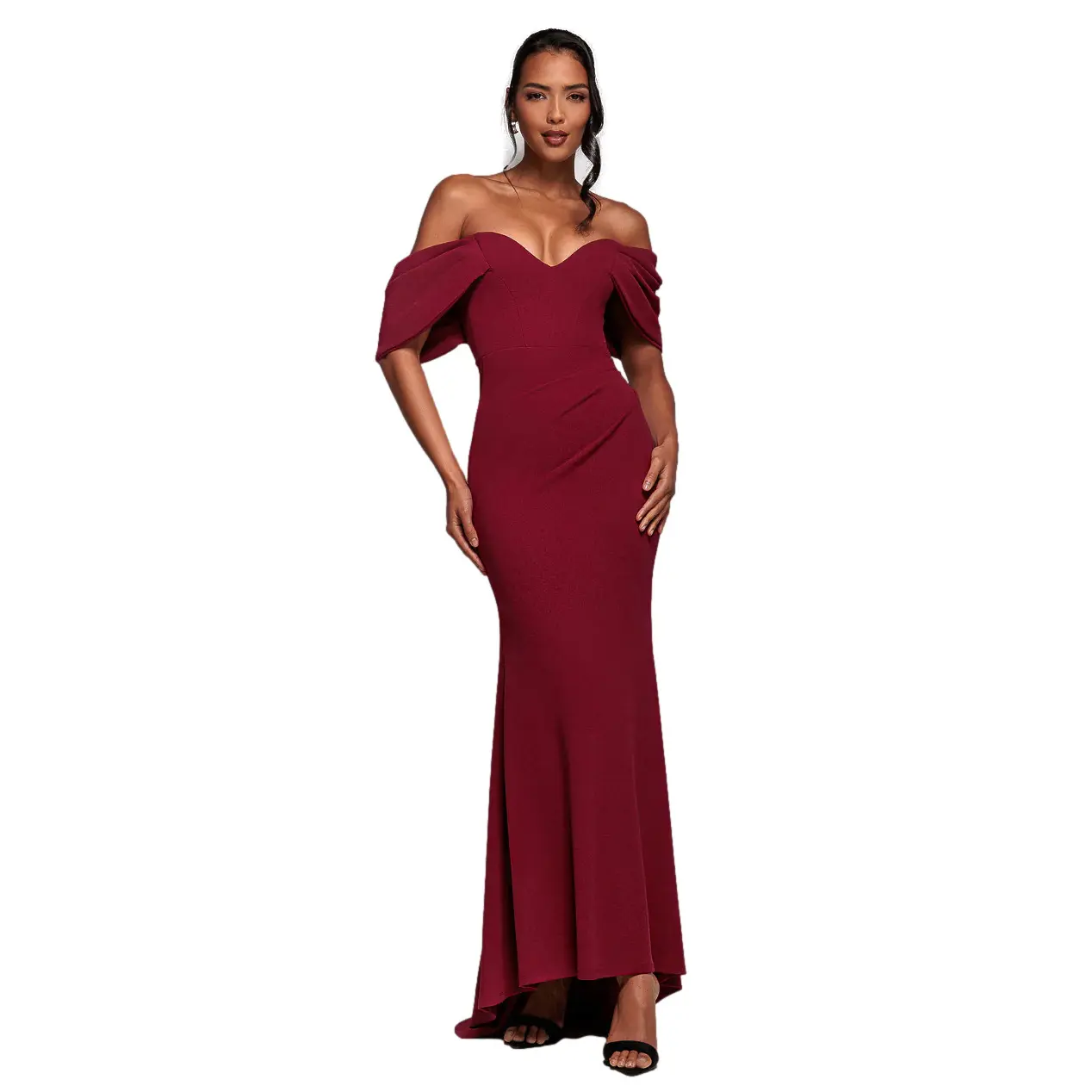 Lang Maxi Jurk Met Off-Shoulder En Drapé Mouwen Dames Goddiva