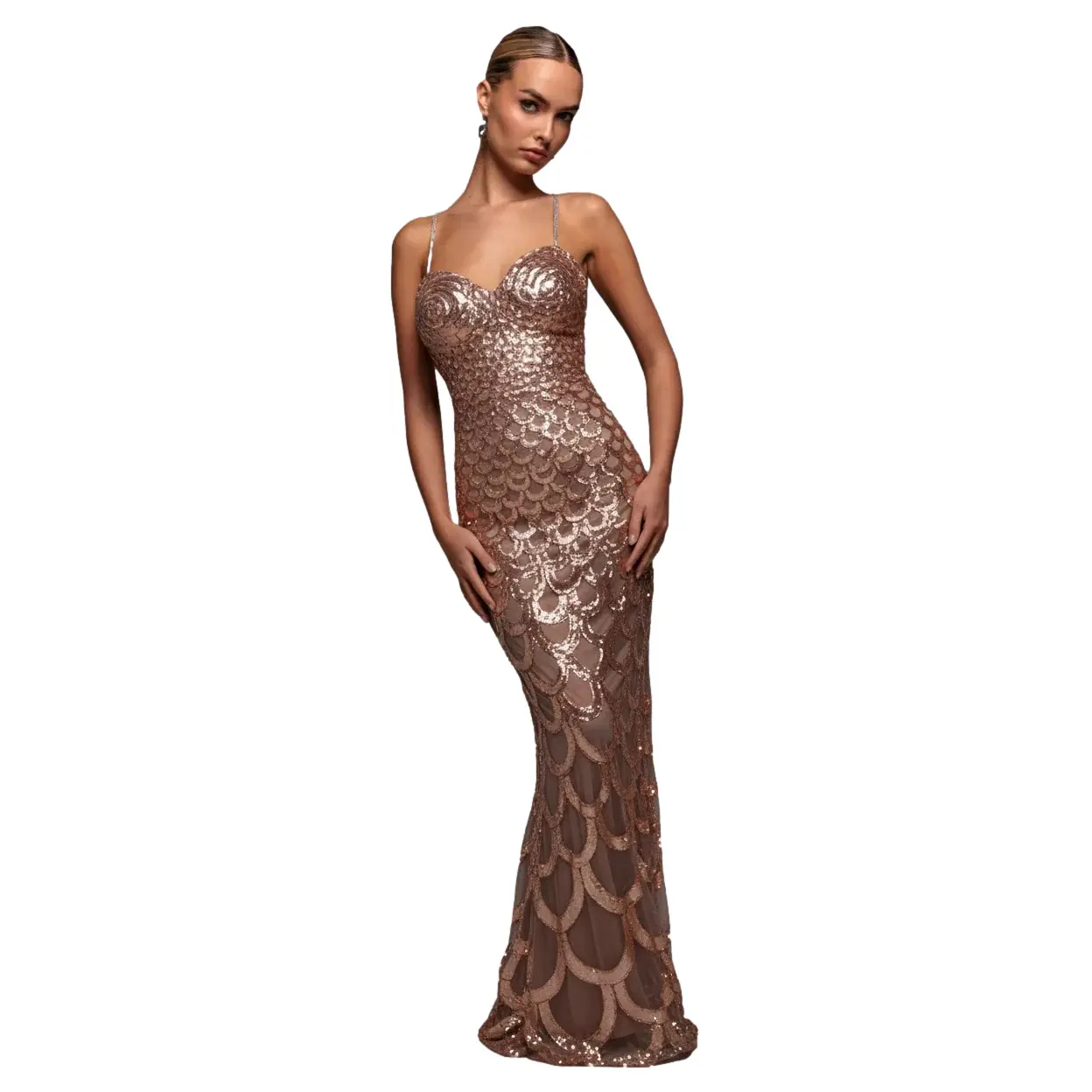 Damesjurk Goddiva Diamante Strap Fish Scale Maxi