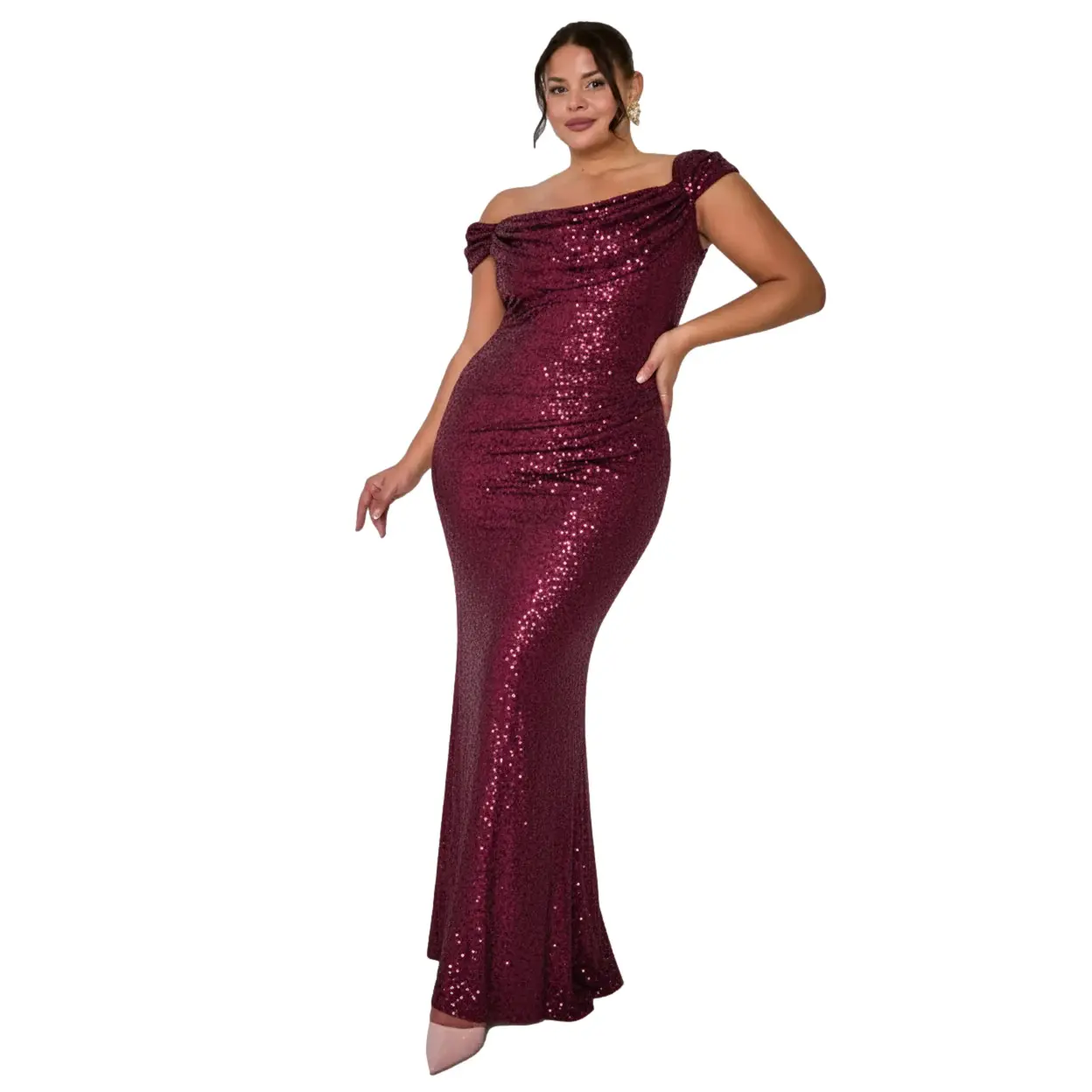 Maxi Bardot Jurk Geborduurd met Pailletten Dames Goddiva