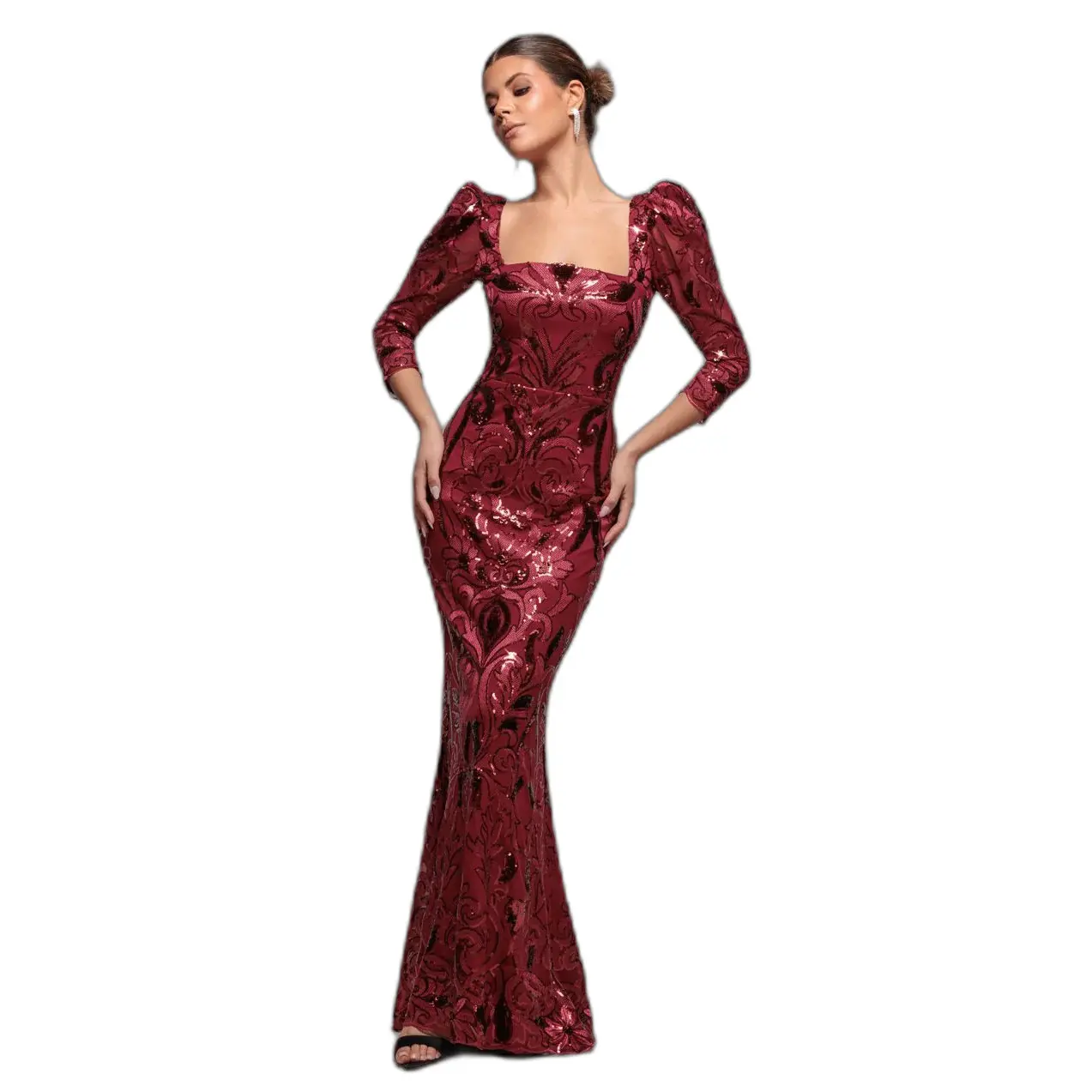 Midi-jurk met pailletten en bénitierkraag dames Goddiva