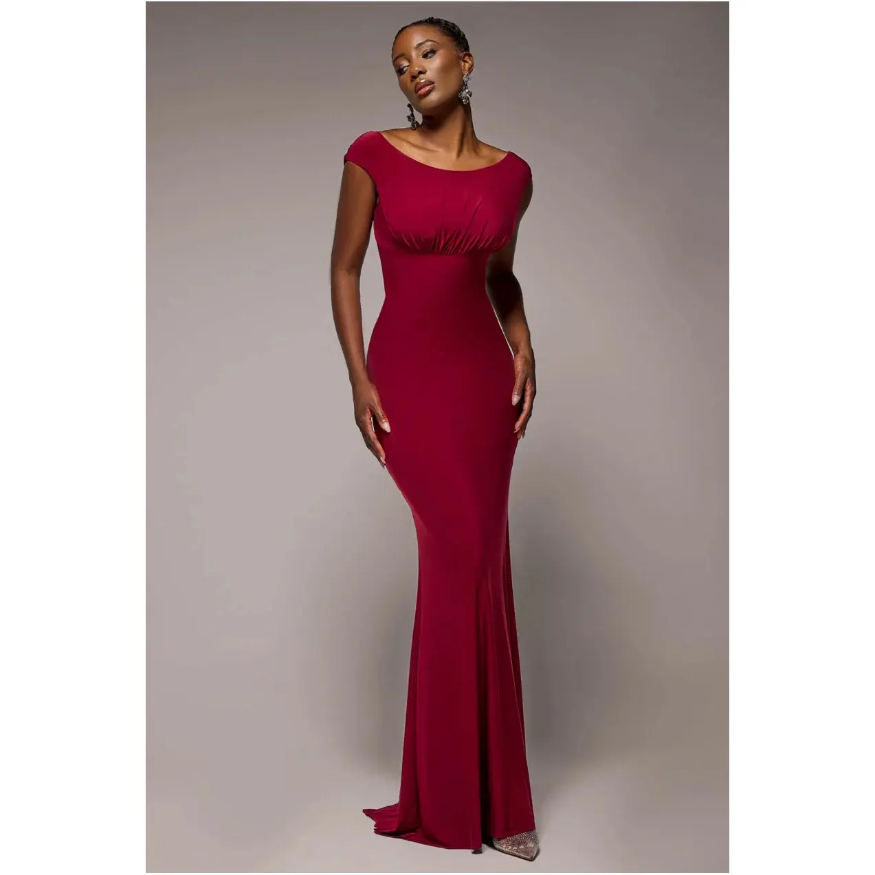 Plissé Scuba Bardot jurk voor dames Goddiva