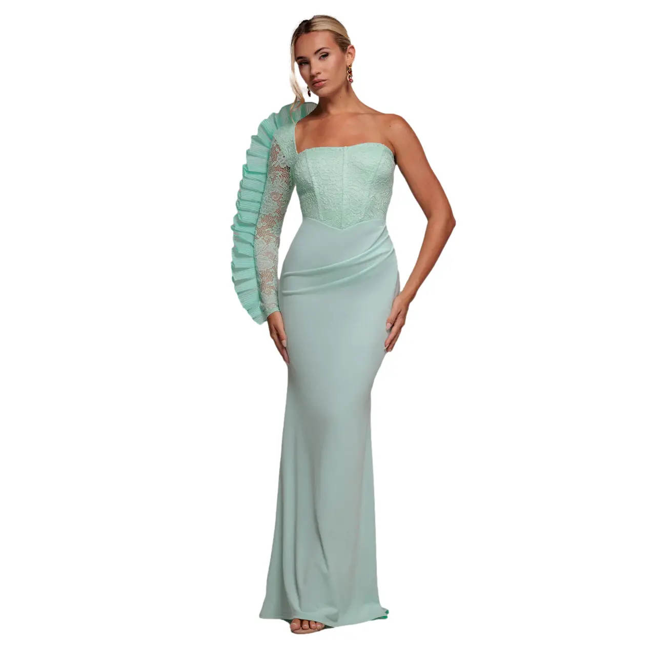 Vrouwelijke Asymmetrische Maxidress met Plissé Goddiva
