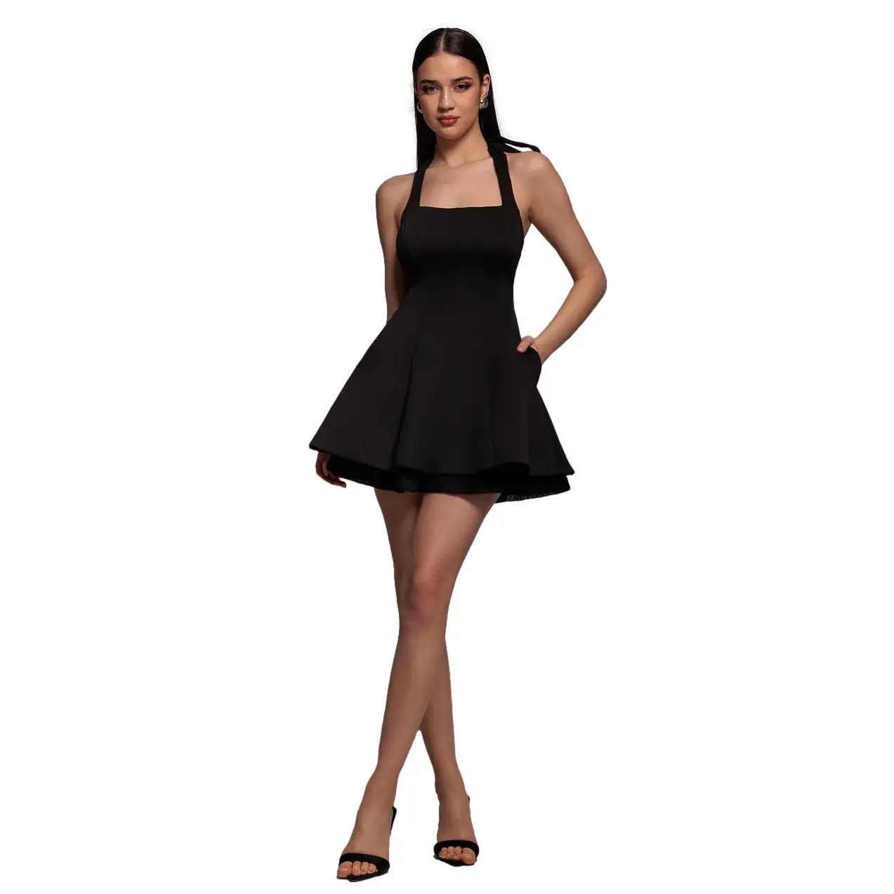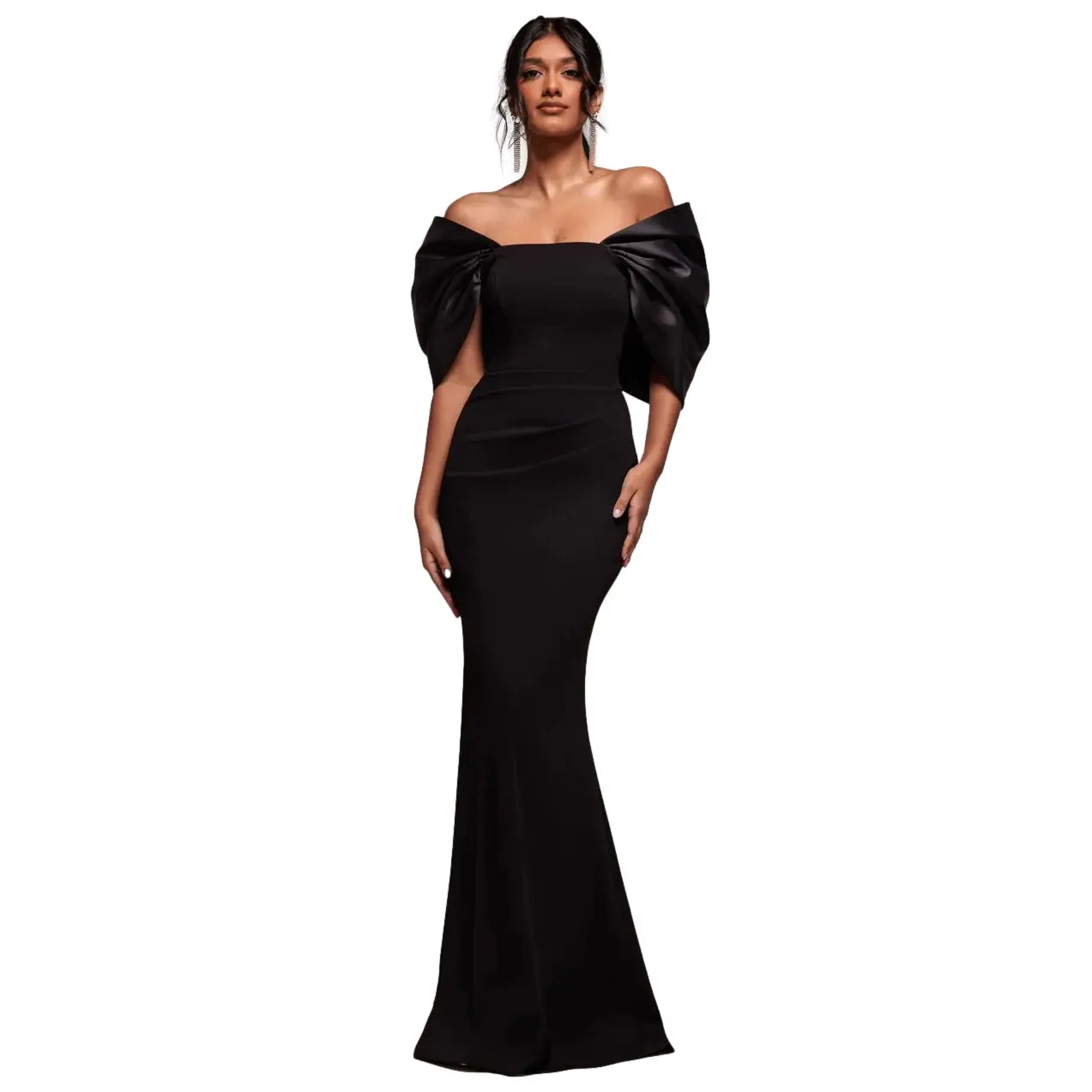 Lang slipjurk met blote schouders en strik op de rug vrouw Goddiva Scuba