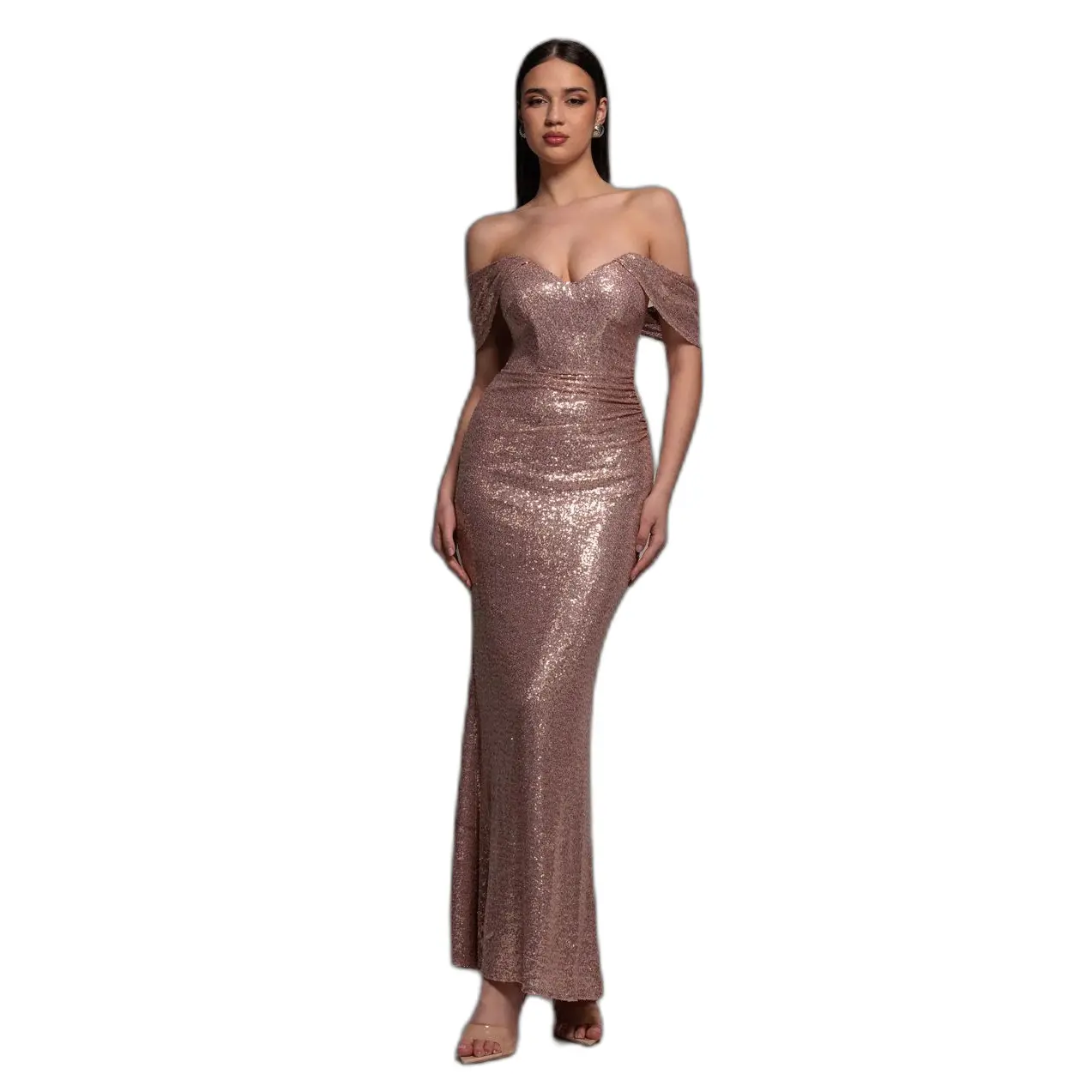 Strakke damesjurk Goddiva Off The Shoulder Sequin Wing