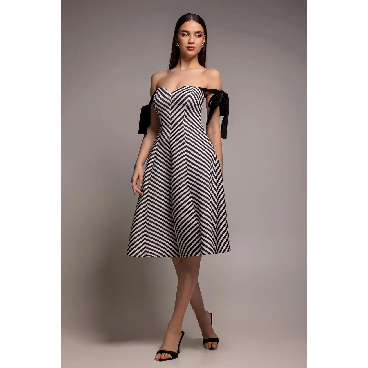 Gestreepte jurk dames Goddiva Bow A Line Midi