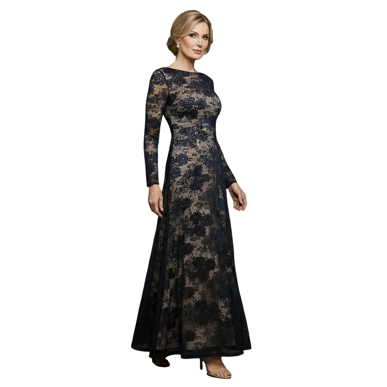 Kanten lange mouwen jurk voor dames Goddiva Maxi