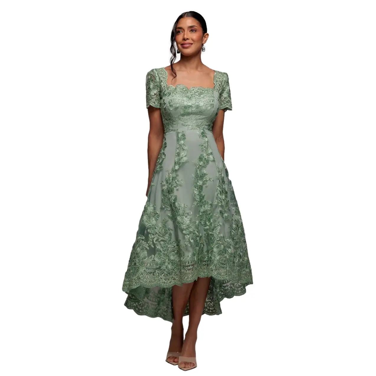 Asymmetrische Midi Strak Lacedress met Festonnekraag Dames Goddiva
