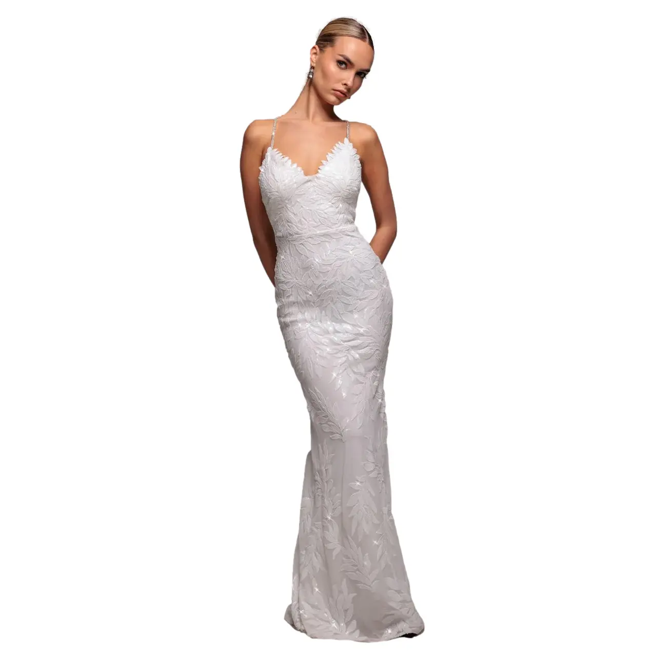 Lang slipjurk met blote schouders en strik op de rug vrouw Goddiva Scuba