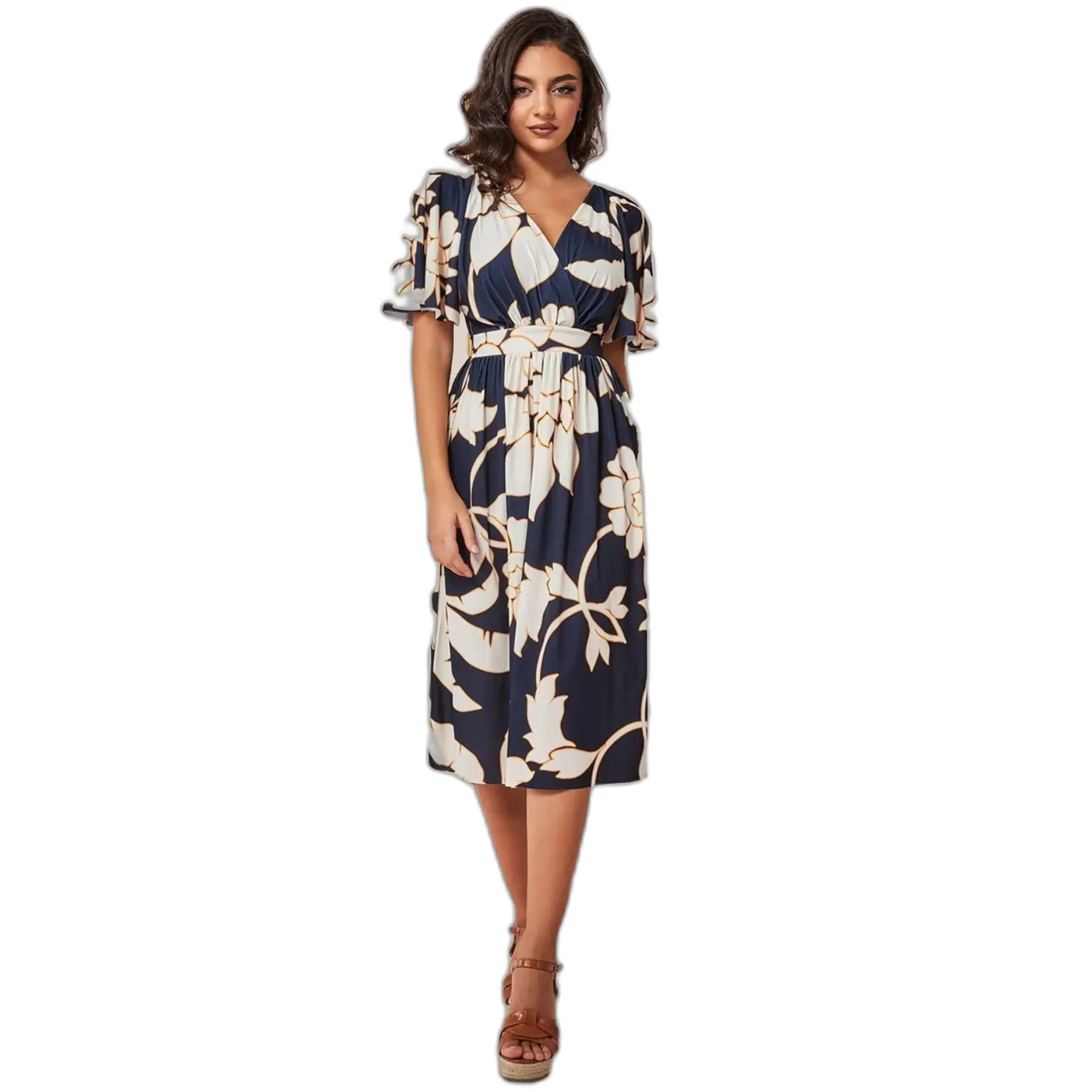 Bloemprint jurk met bénitier kraag dames Goddiva Jacquard