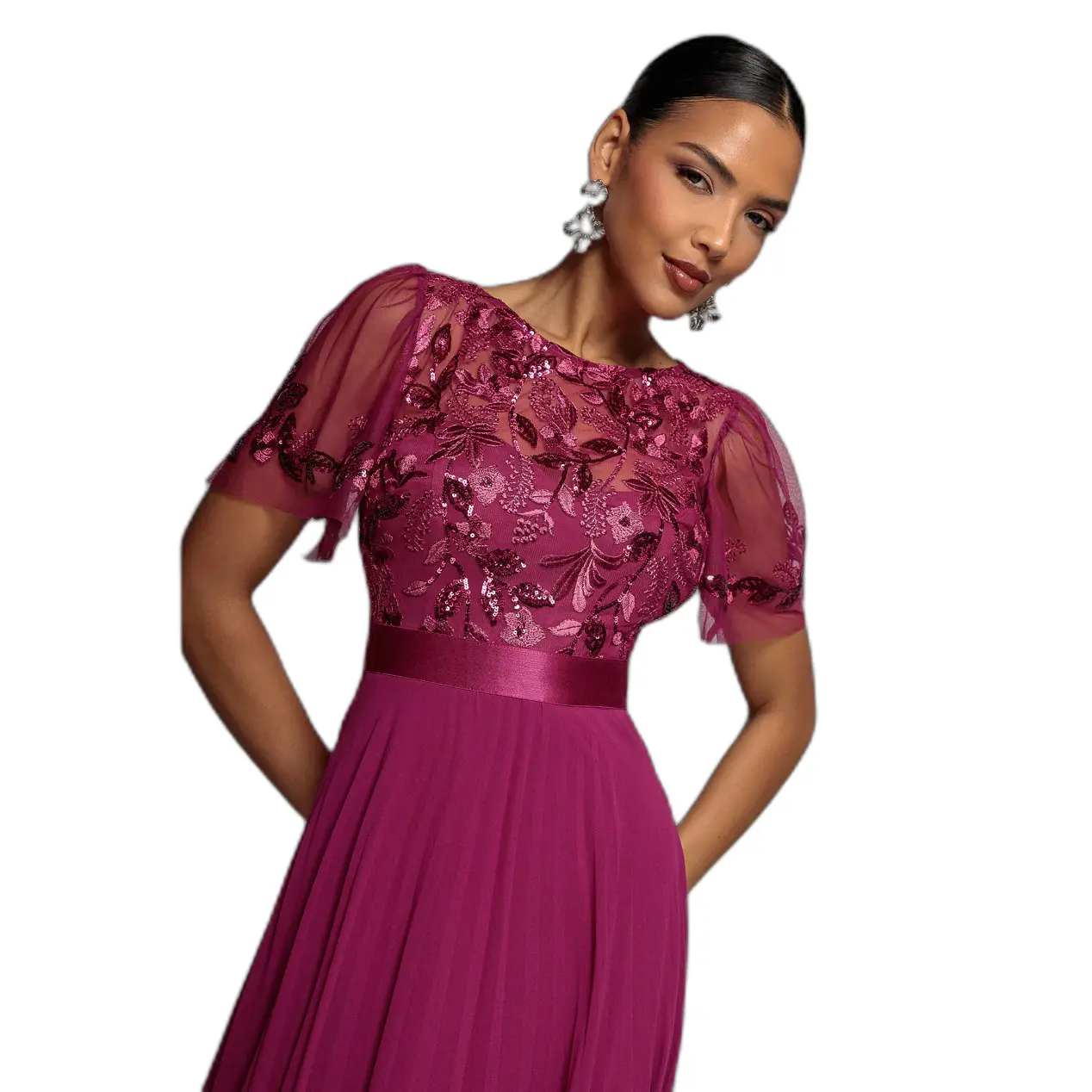 Geplooide midi jurk in geborduurd chiffon dames Goddiva