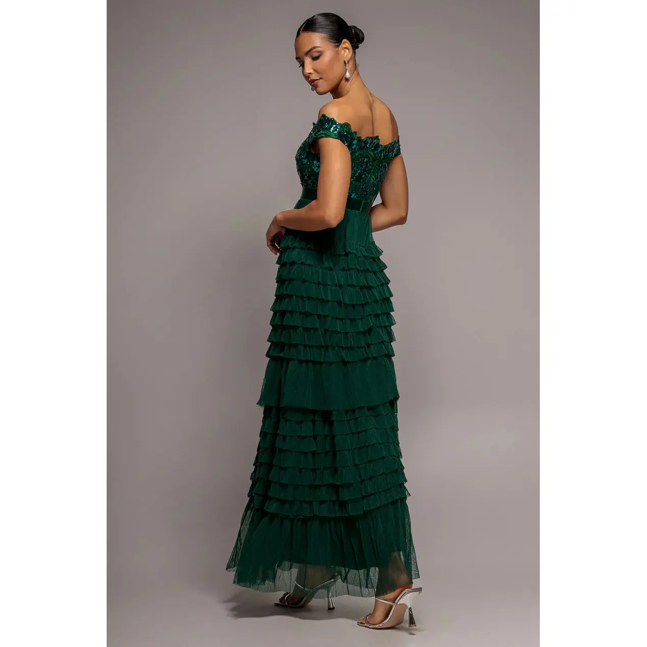 Damesjurk Goddiva Bardot Sequin & Lace High