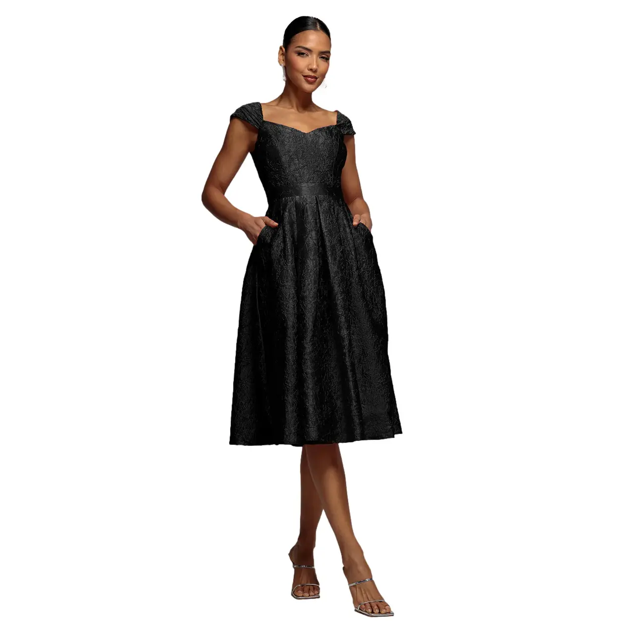 Vrouwelijke strak zittende jurk met flapmouwen Goddiva