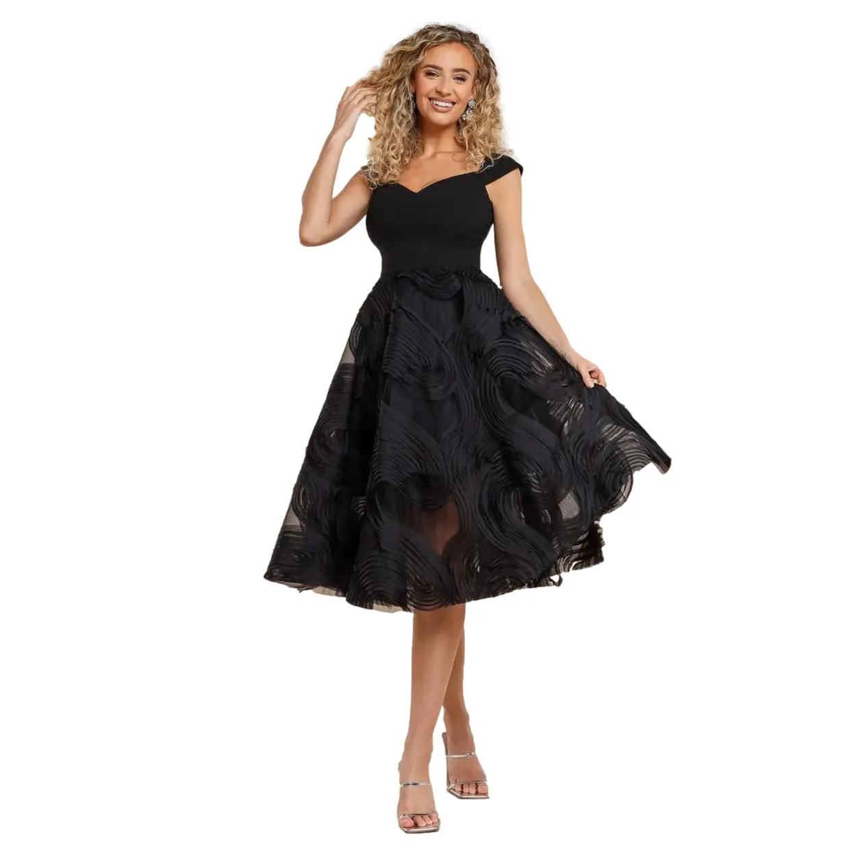 Getailleerde jurk met vierkante hals en gekarteld zoom voor dames Goddiva Midi