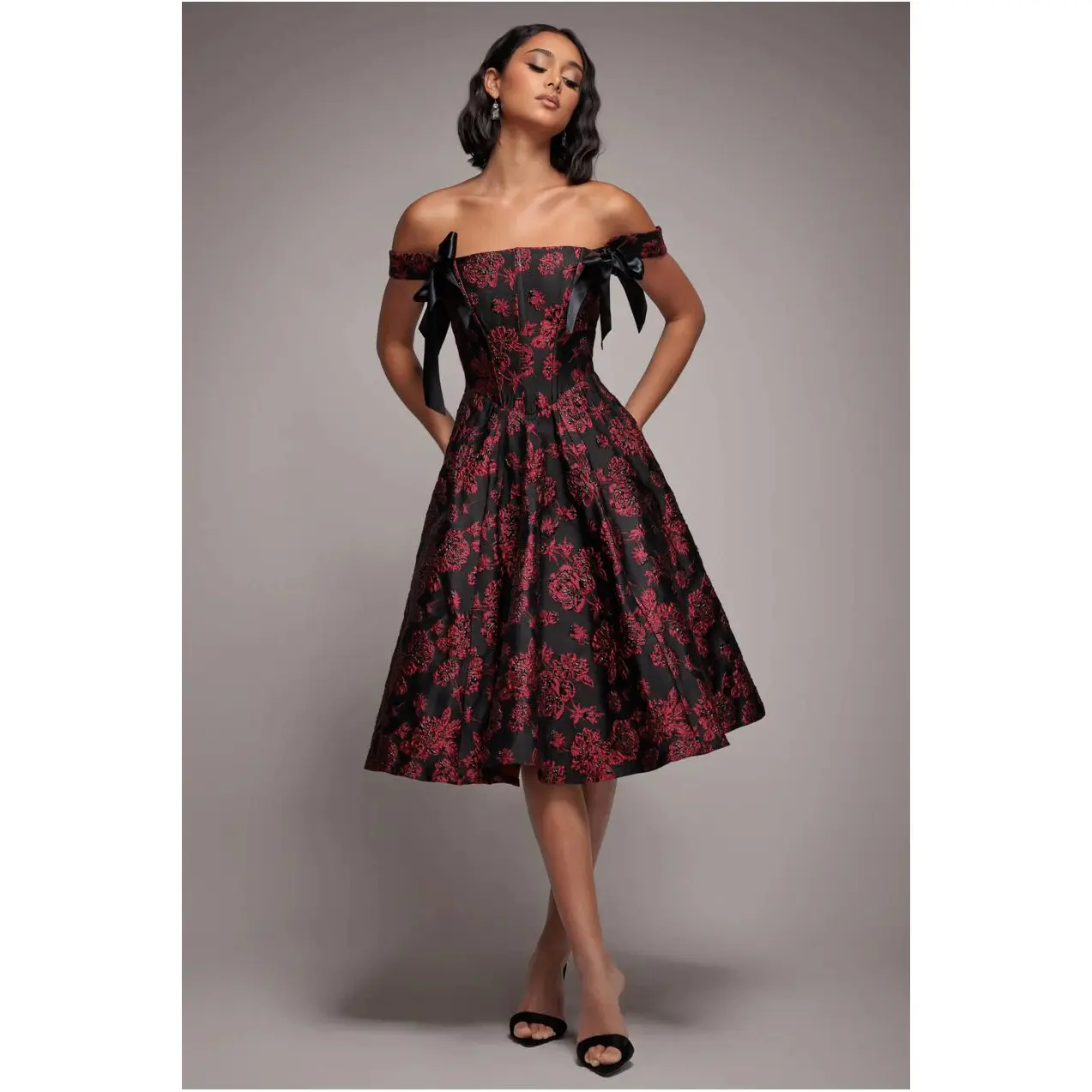 Midi Bardot Jurk Met Bloemmotief In Mousseline Dames Goddiva