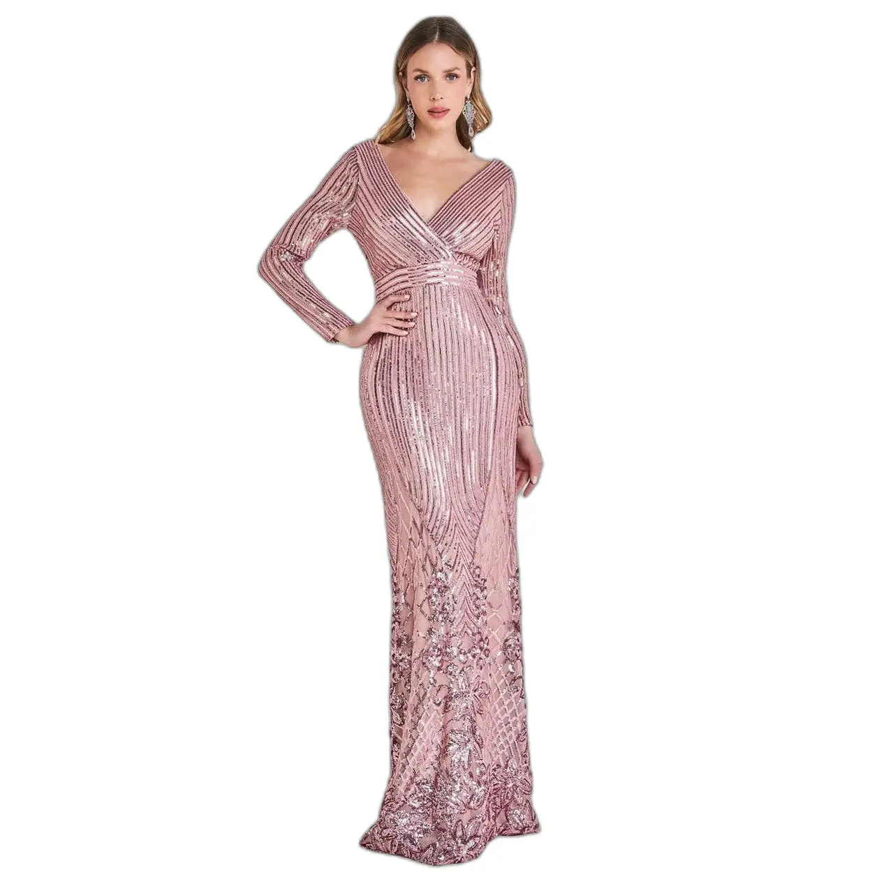 Maxi jurk met pailletten en portretdecolleté dames Goddiva
