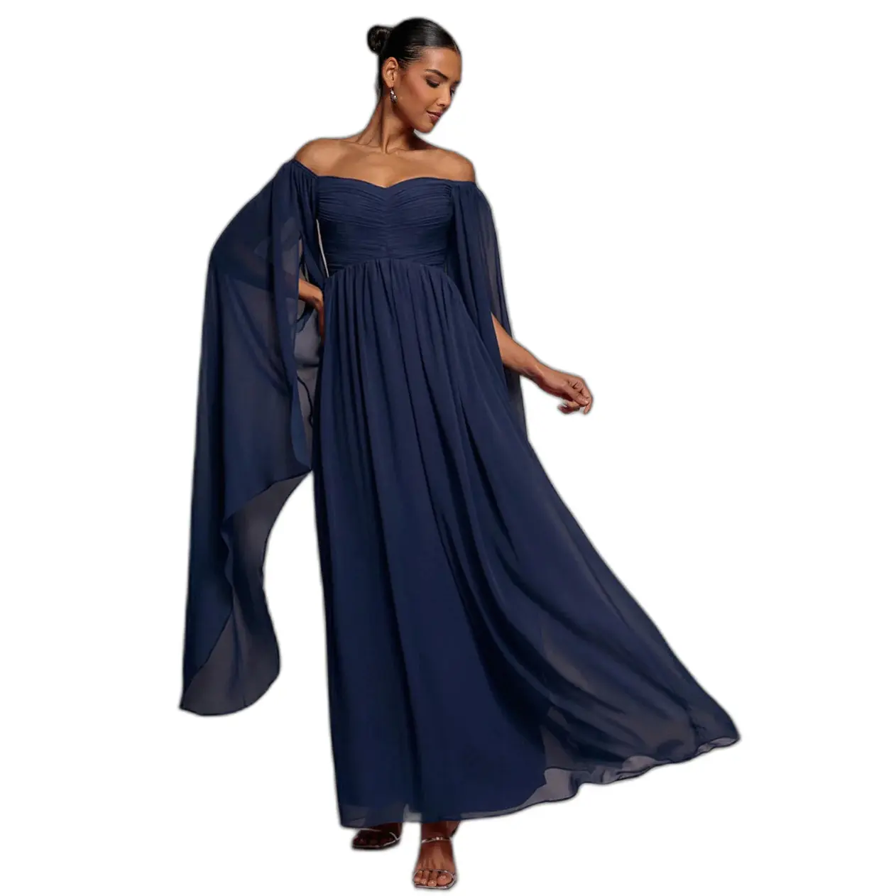 Maxi Bustier Jurk met Plissé Cape Dames Goddiva