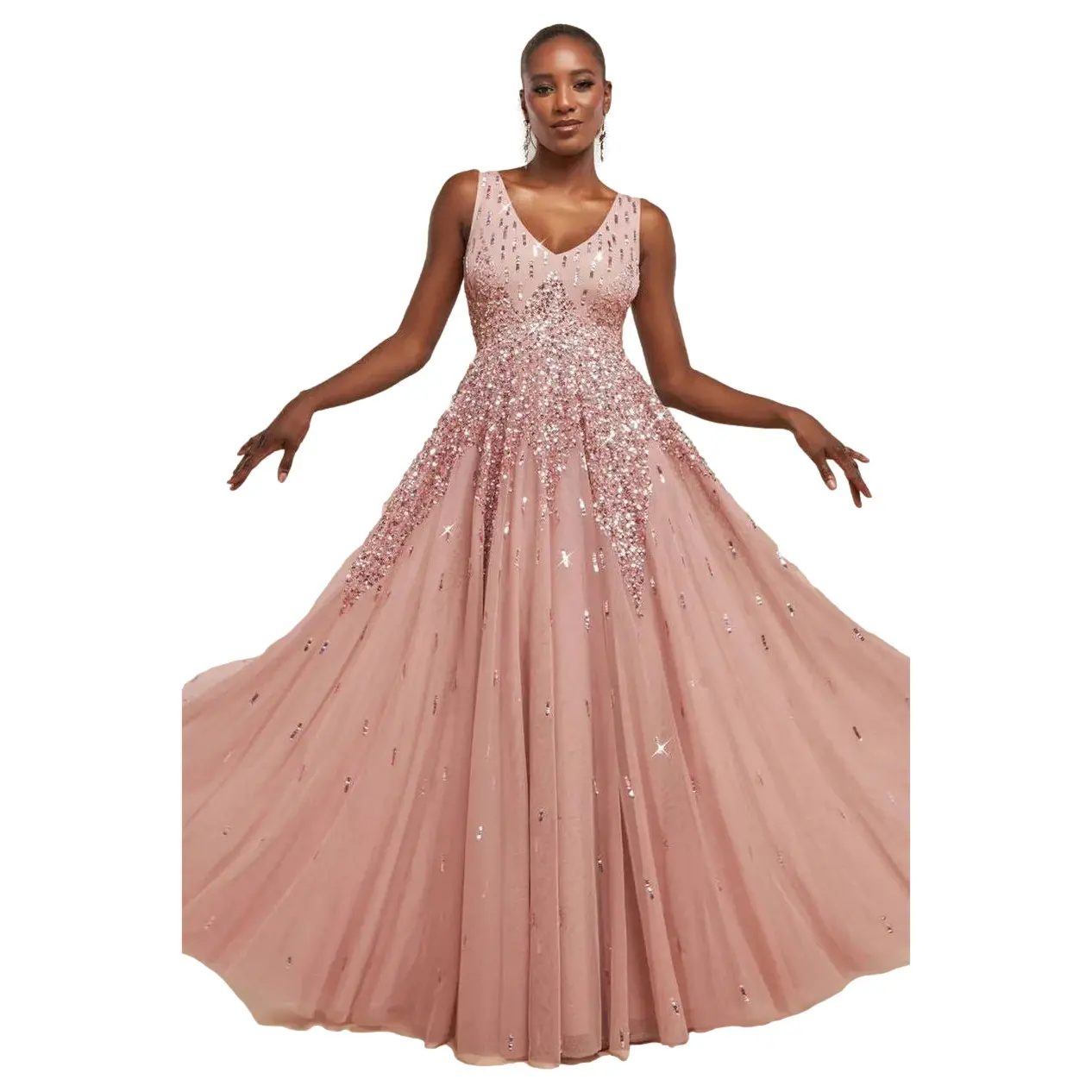Handgeborduurde Mouwloze Lange Portefeuille Jurk met Pailletten Dames Goddiva Sunray