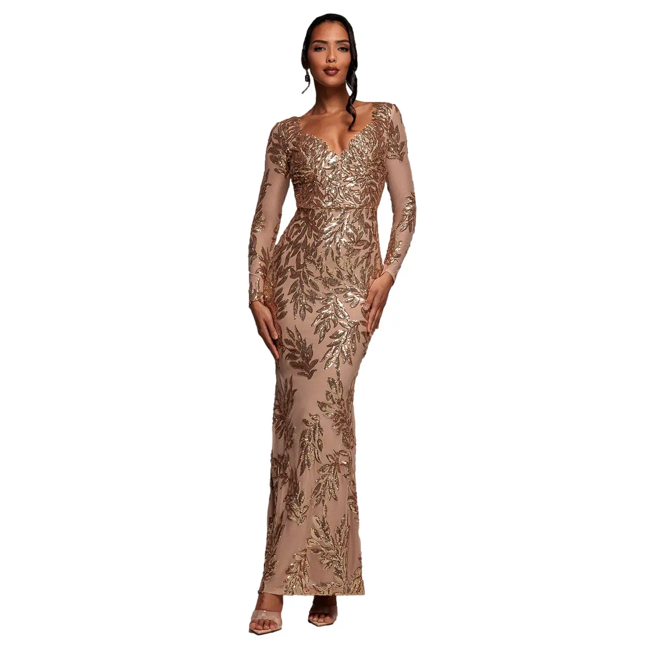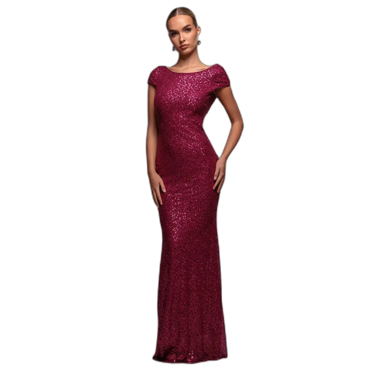 Vrouwelijke rugloze sequins jurk Goddiva Maxi