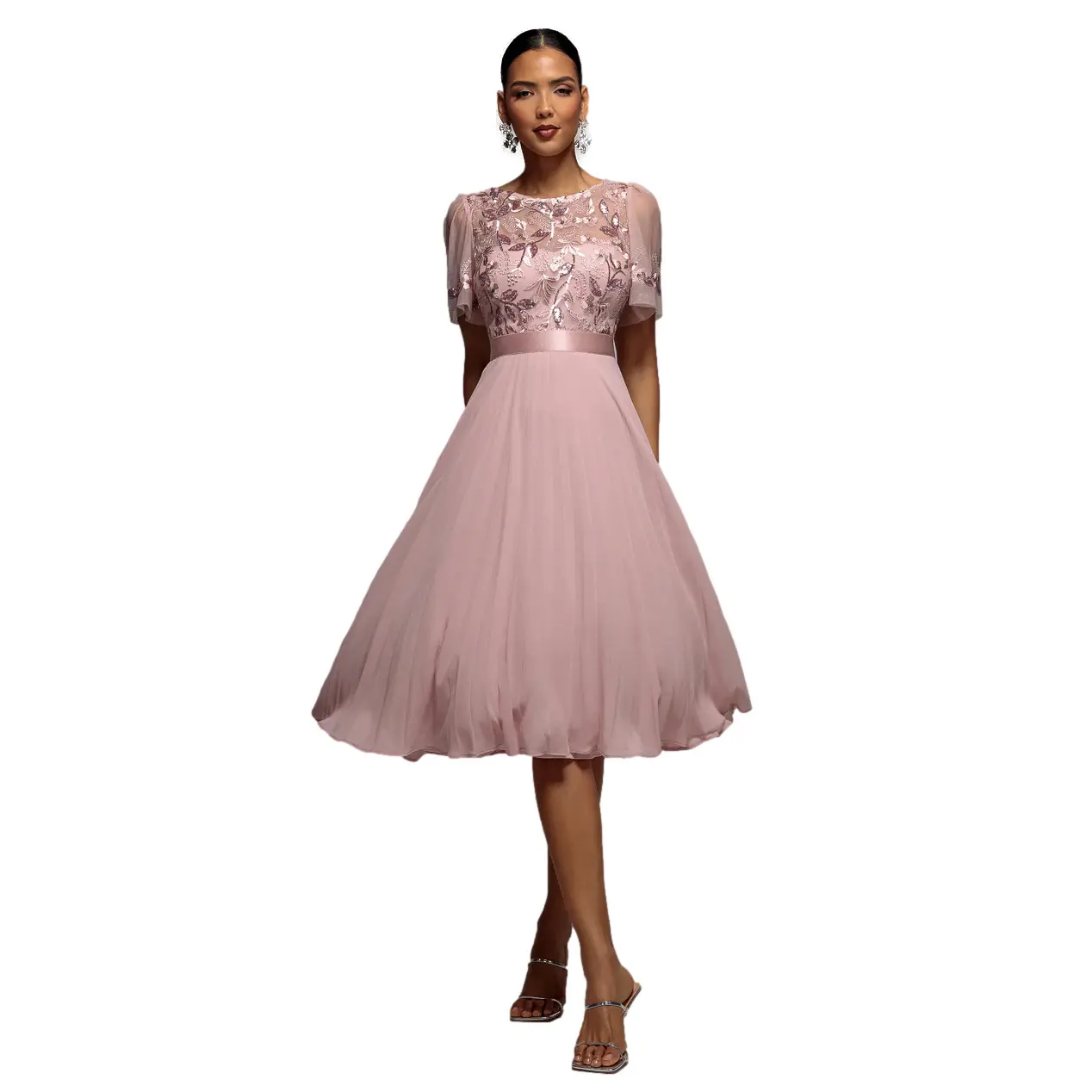 Geplooide midi jurk in geborduurd chiffon dames Goddiva