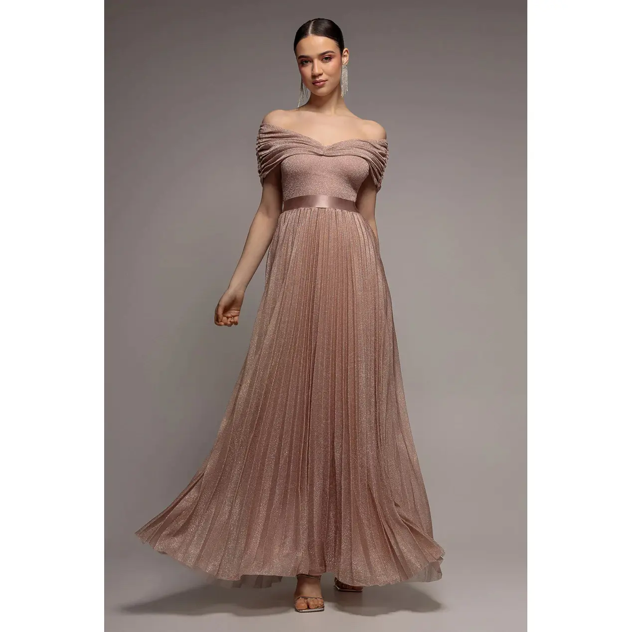Lang Jurk Met Off-Shoulder En Draperende Mouwen Dames Goddiva