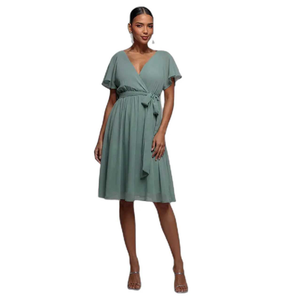 Zijdeachtige jurk met bénitierkraag dames Goddiva Bardot