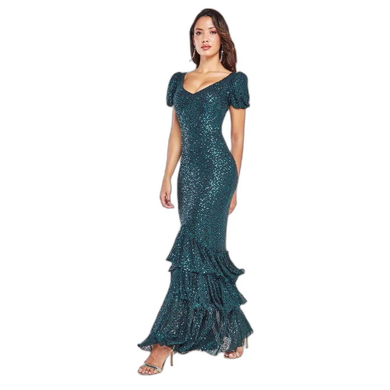 Glitterende lange jurk met hoge kraag dames Goddiva