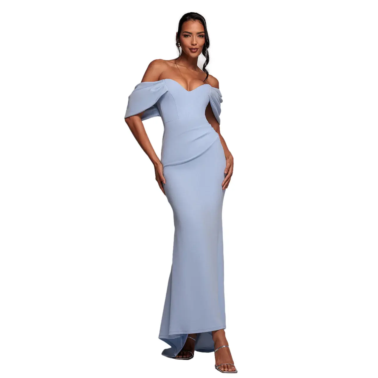 Lang Maxi Jurk Met Off-Shoulder En Drapé Mouwen Dames Goddiva