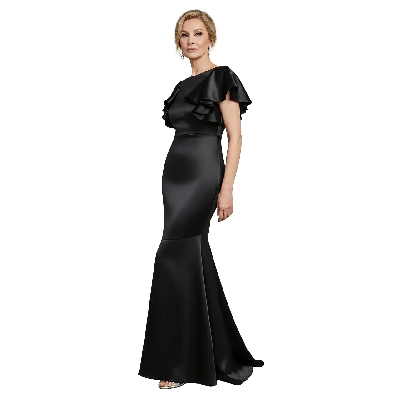 Lang Leve Vrouwelijke Satijnen Mermaid Robe Moulante met Lange Vlinder Mouwen Goddiva