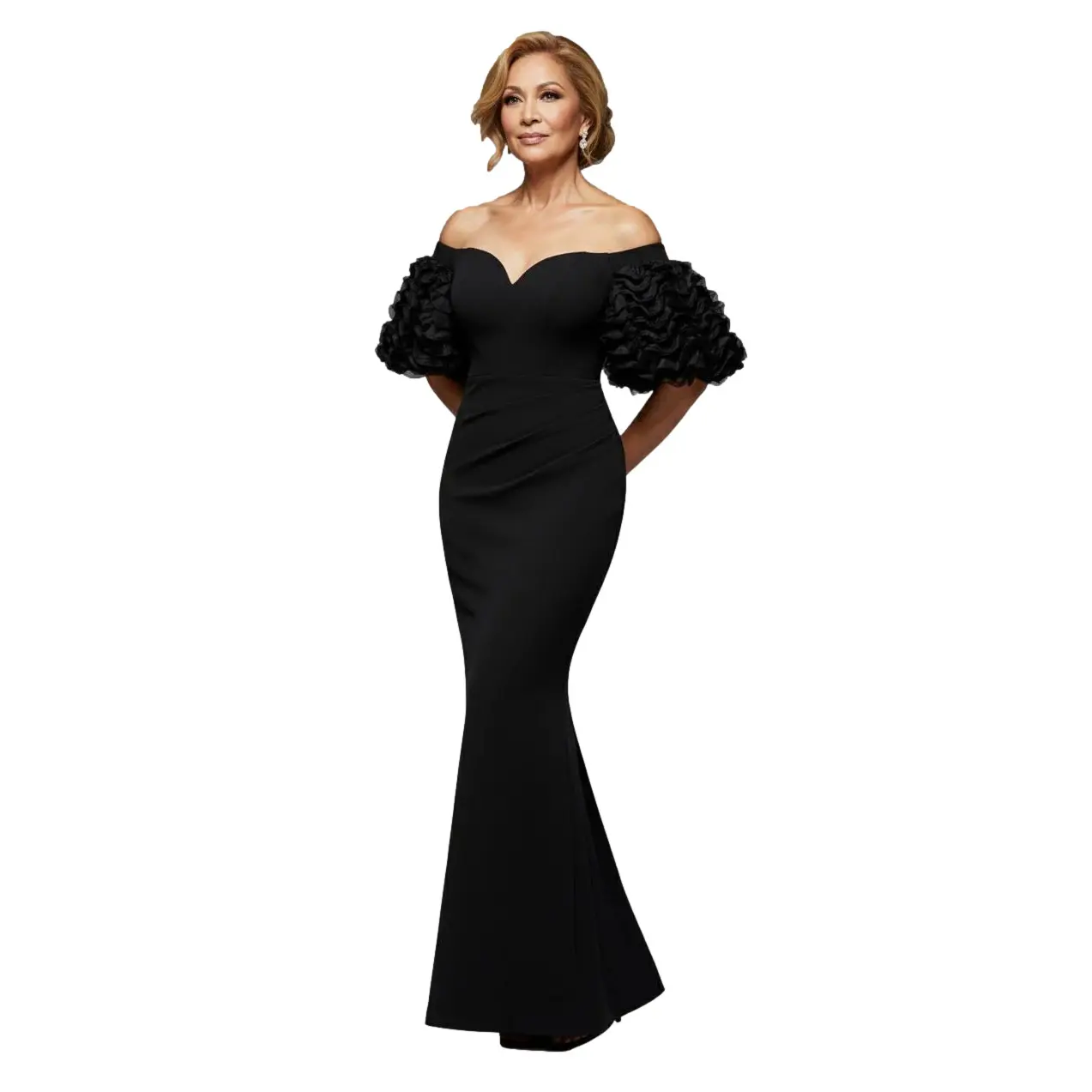 Langue Mouwloze Lange Strakke Jurk met Buffante Mouwen Dames Goddiva
