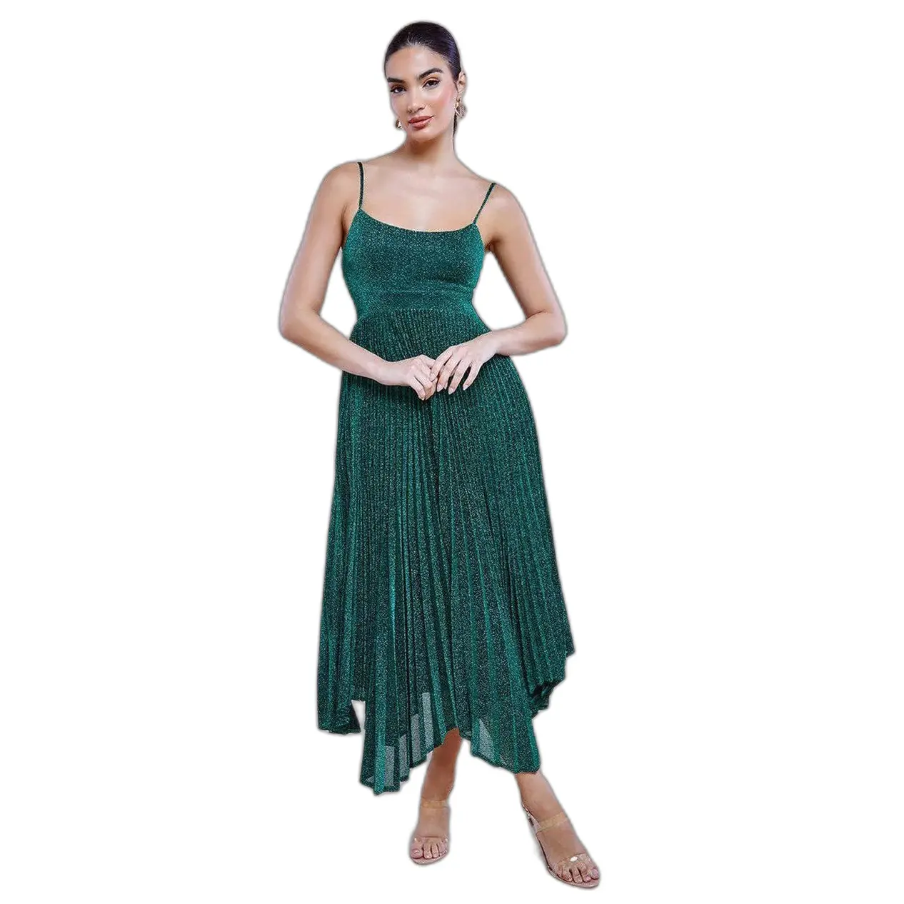 Maxi Laarzen Bodycon Spaghetti Strap Jurk met Glitter Dames Goddiva