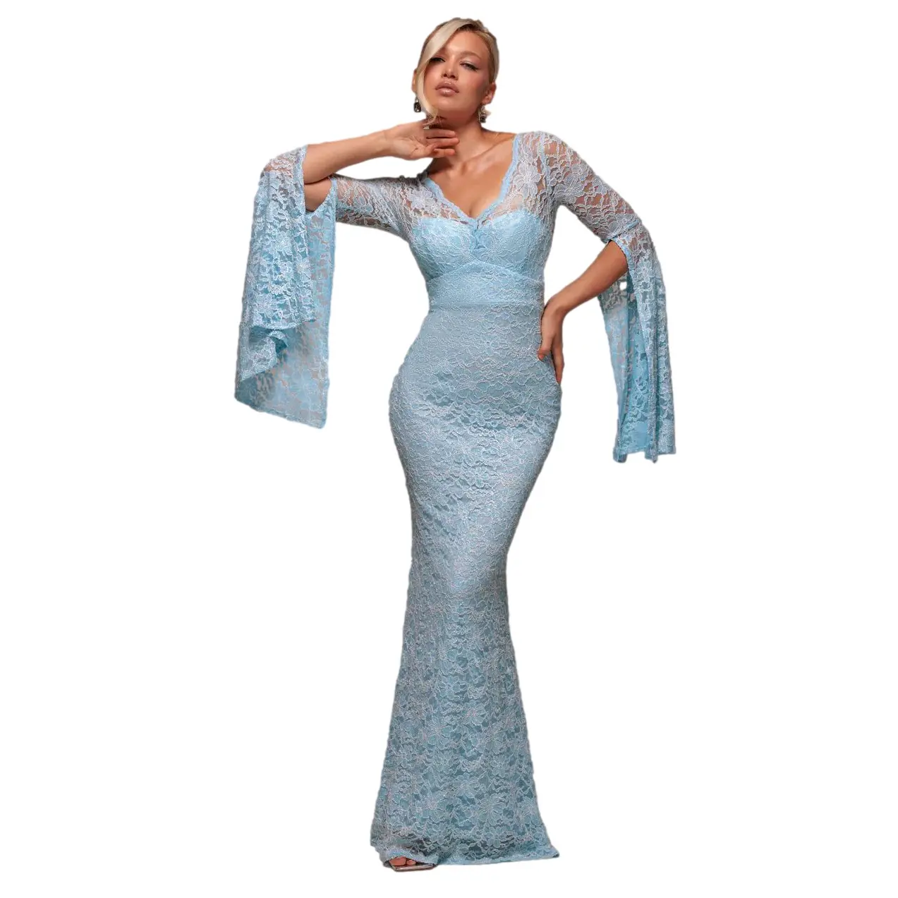 Kanten cape mouw jurk vrouw Goddiva