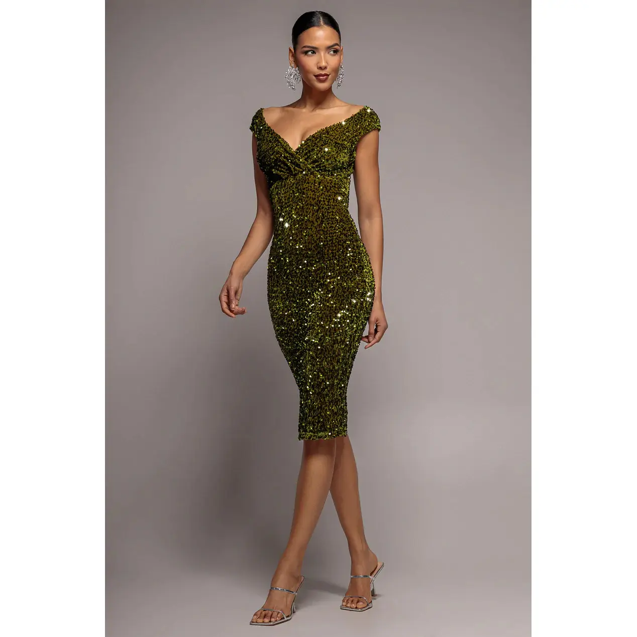 Vrouwelijke rugloze sequins jurk Goddiva Maxi